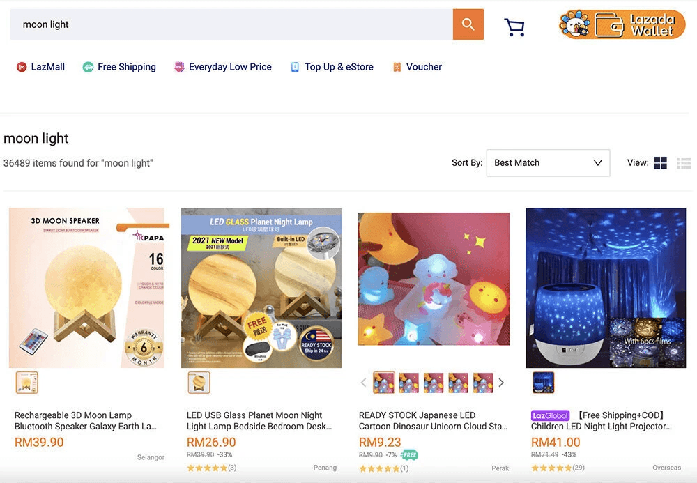 Using the keywords we found in step 1, we can search for competitor listings in Lazada.