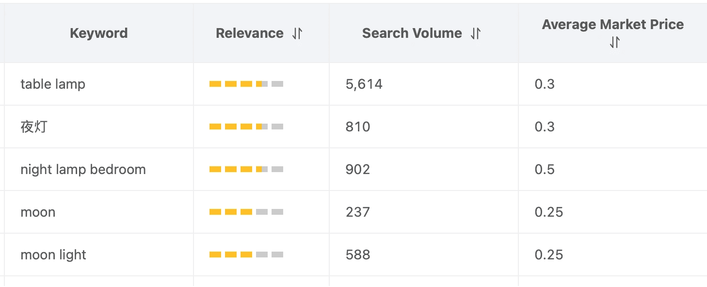 There is healthy traffic for night lamp keywords and even for “moon light” this gives me confidence that people are interested in purchasing the product.