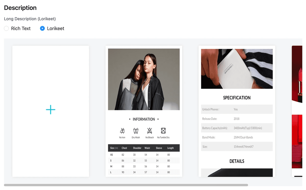 Rich texts can be used if you are familiar with HTML coding to format the description in a customized way. However, unless you are doing it on purpose, we don't recommend using the rich text feature. Stick to Lorikeet, as it is easier and better to upload product description graphics that way.