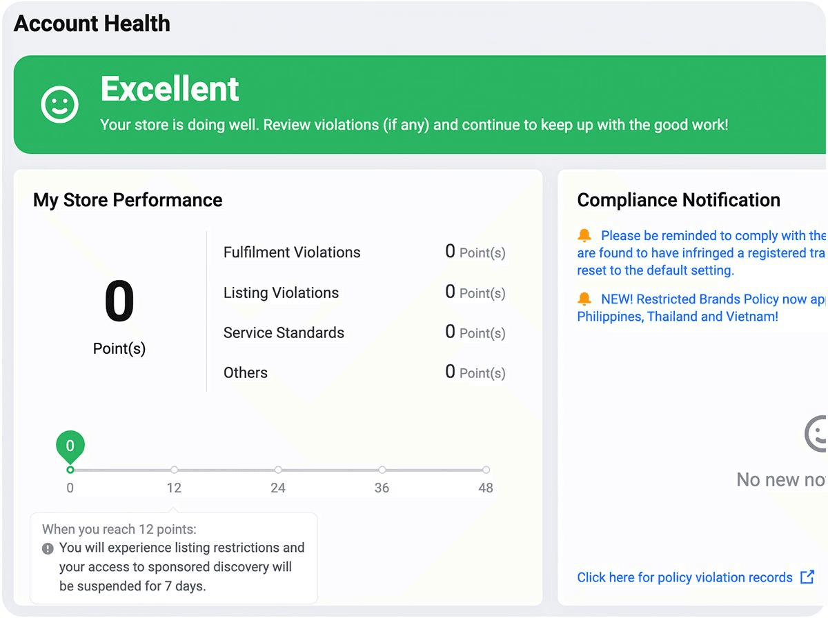 If you wind up with a prohibited product on your storefront, it may result in removal of your product listing and/or issuance of non-compliance points. If you accumulate more than 48 non-compliance points your account may get deactivated, under the discretion of Lazada.