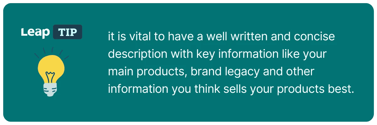 If it isn't precisely evident to buyers what your shop is peddling, they will go to your shop description for a synopsis to understand better.