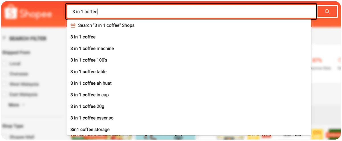 In Shopee homepage, you can type your keywords in the search box to see the list of relevant and popular keywords.