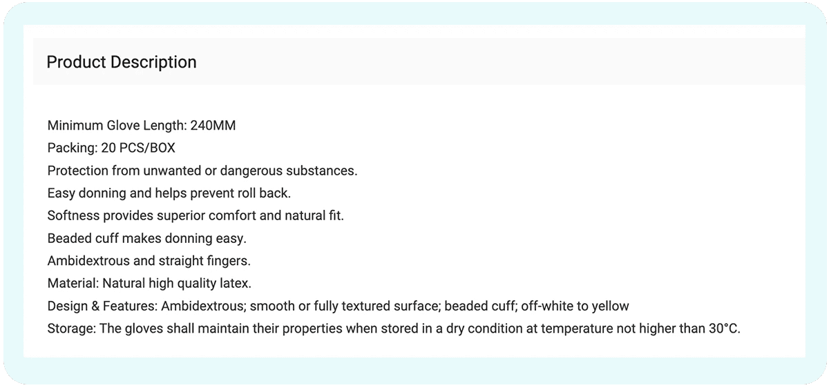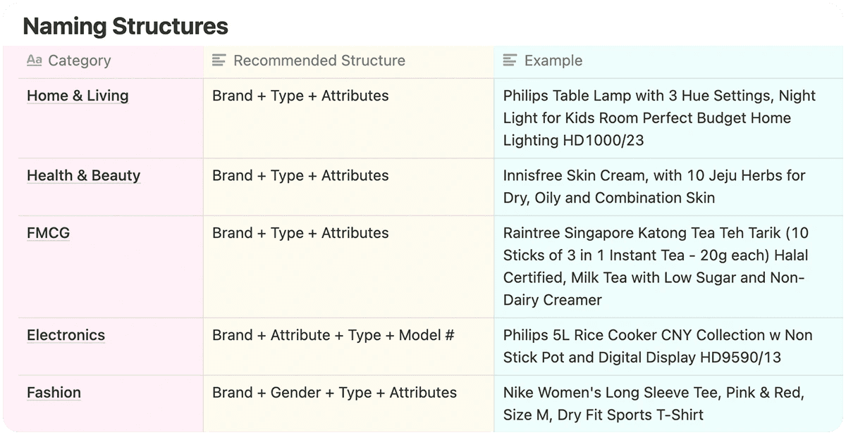 Brand Name - Product Identifier - Product Specification/Attributes - Details/Benefits/Where to Use