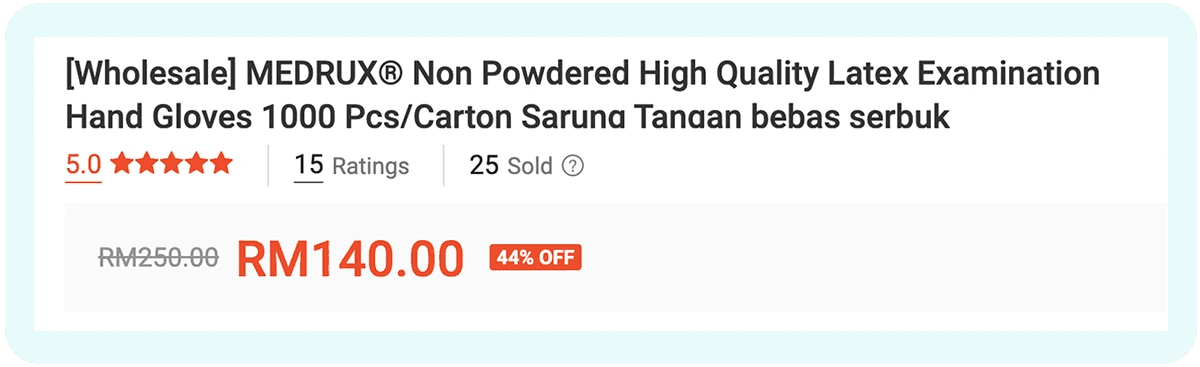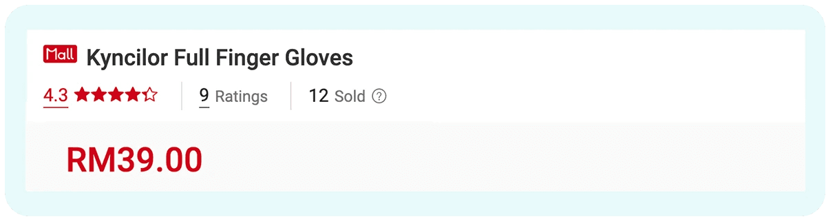 See how the title only mentions a product name and a 3-word description. This particular product was listed on the 14th page of Shopee search results under the keyword gloves.