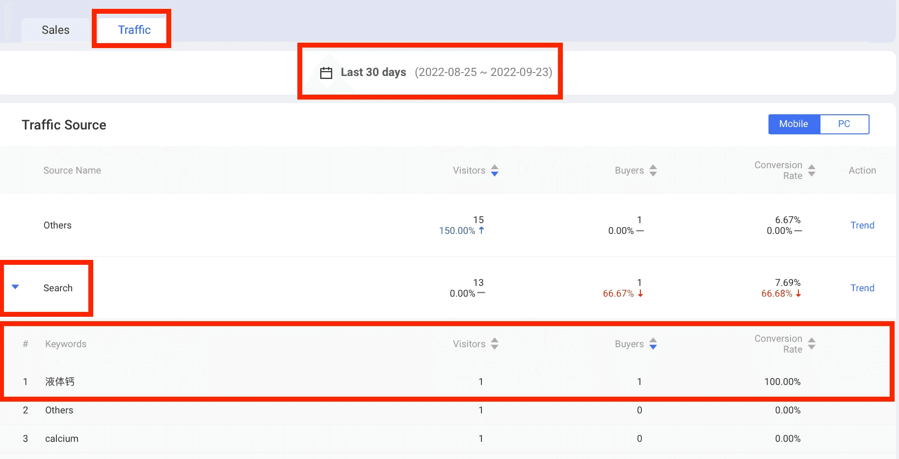 3. In Traffic Tab, select date [Last 30 Days] and scroll to: Search” in Traffic Source